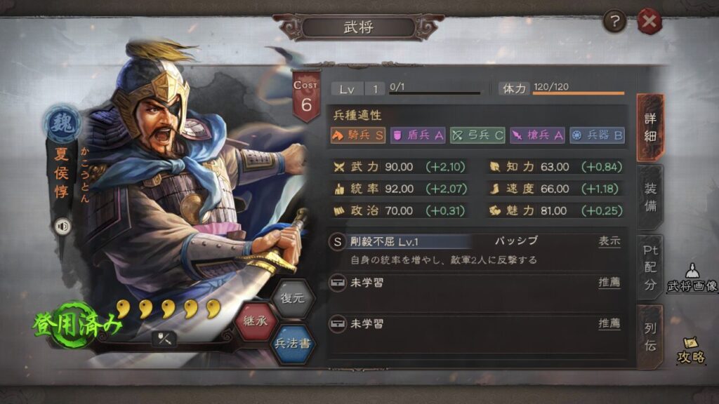 夏侯惇 盾の兵種適正がSに