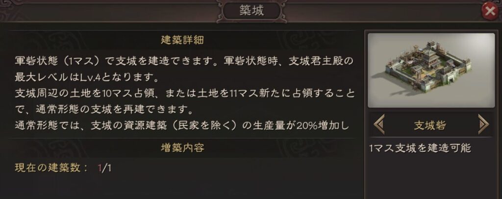 緊急施工も土地生産量を増やせるので良さそうですが、君主殿最大レベルが4までしか上げれないデメリットがあります。