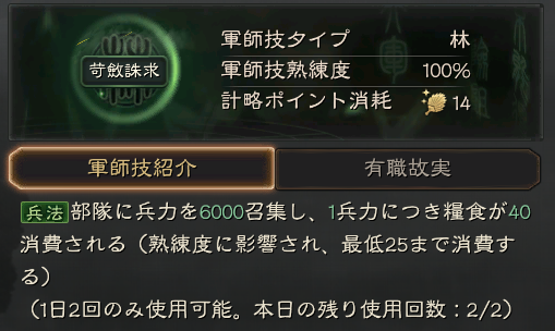 - 戦闘で使用しなくても董卓等の使える軍師技はたくさんある。