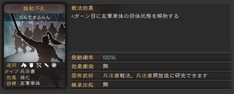 臨敵不乱12、誘敵之策8、親衛12、励軍11、速戦11、掩虚2