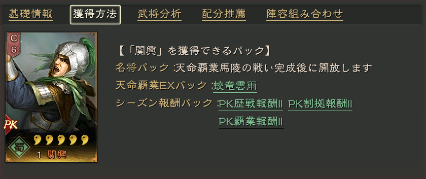 それ以降では名将ガチャ、シーズン名将ガチャ、ピックアップガチャ、秘蔵ガチャ、覇業ガチャで入手機会があります。