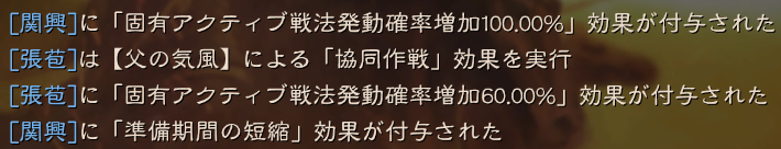 - 副将 関興(単騎千里・剛勇無比/後発先至・鬼謀・将威)