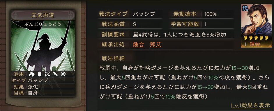パッシブ戦法でアクティブ戦法発動毎に効果があるので、固有戦法がアクティブ戦法の楽進などのアタッカー武将と相性がいいです。
