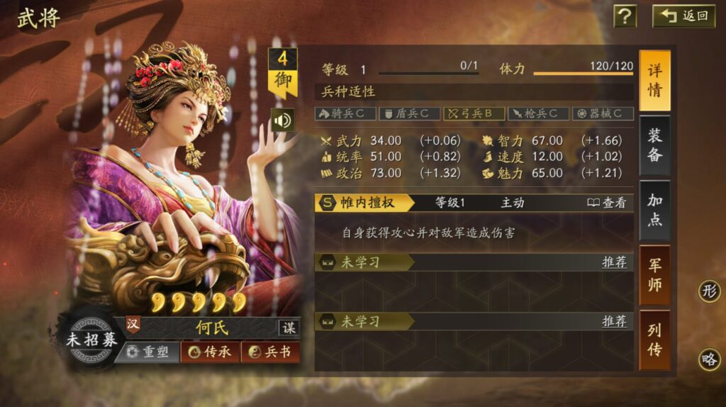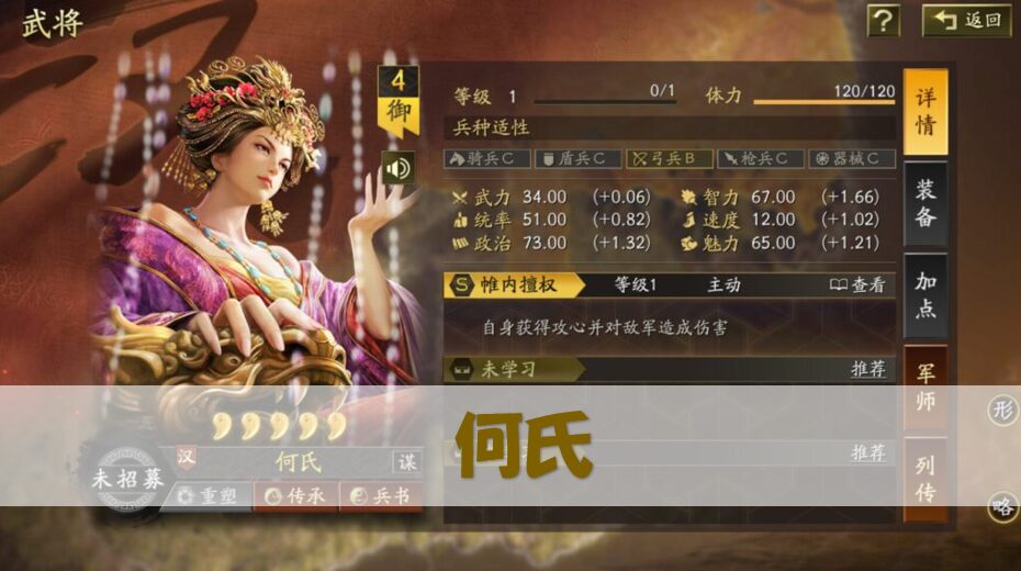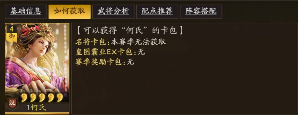 何氏は日本の三国志真戦には登場していませんが、中国版で登場している武将です。