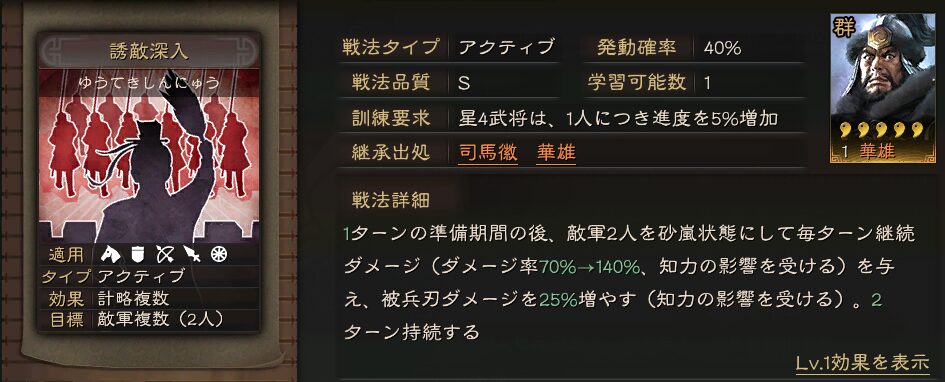 • 継承戦法「誘敵深入」は不要。