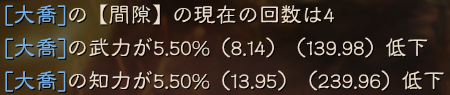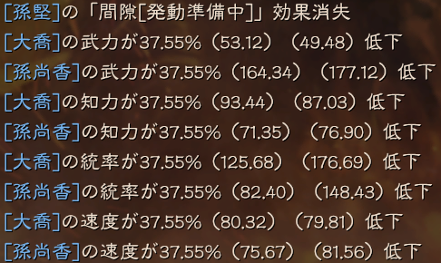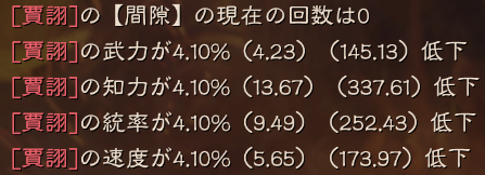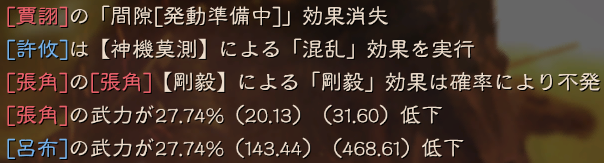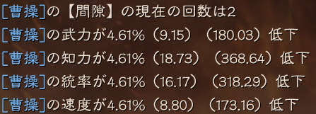 すべての間隙を発動させた場合に許攸が混乱していると、自軍の能力値が低下する可能性があります。
