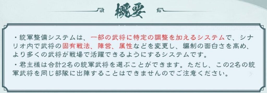 変更したい場合は統軍武将のリセットが必要なので48時間経過している必要があります。