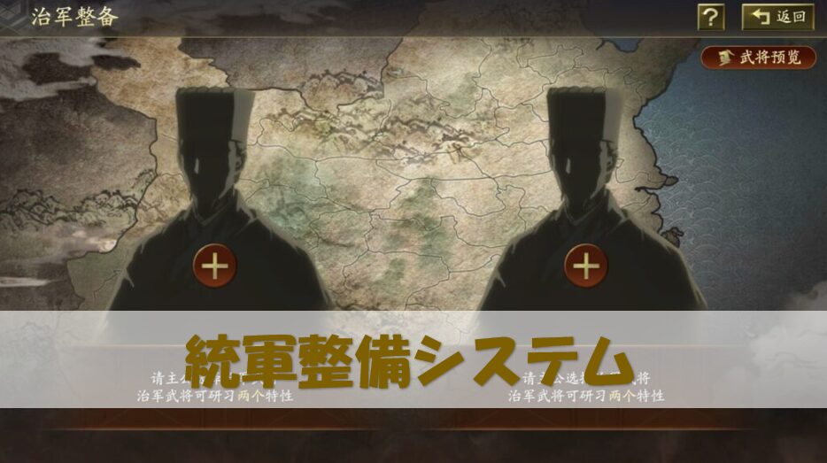 統軍武将を選んで技を覚えさせるほかに、兵謀というものが存在します。特殊な部隊強化効果があるのでどの兵謀を選択するか事前に検討しておきましょう。