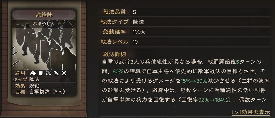 必須戦法は武鋒陣くらいで後は代替の余地があります。