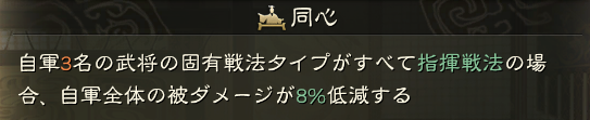 PKシーズン「兗州の戦い」の統軍整備システムでは、SP周瑜を強化する事ができるので、この3名で編制すれば指揮戦法で一致する事ができて被ダメを8%も減らす事ができます。