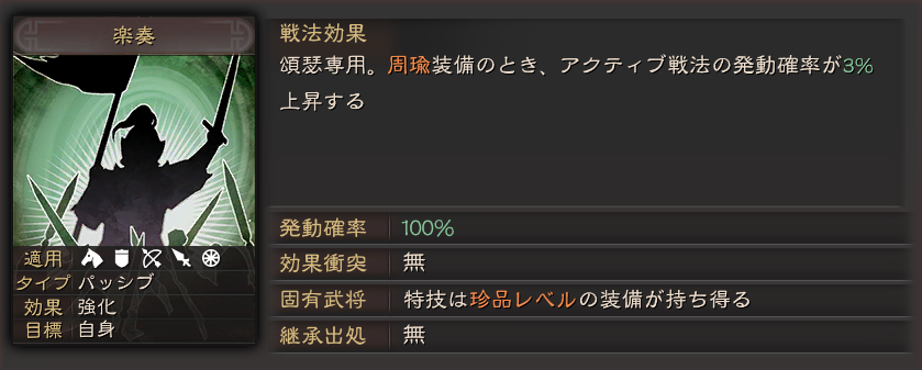 SP周瑜でも発動可能で、上兵破謀などアクティブ戦法を覚えさせている場合はシンプルに発動確率が上がります。