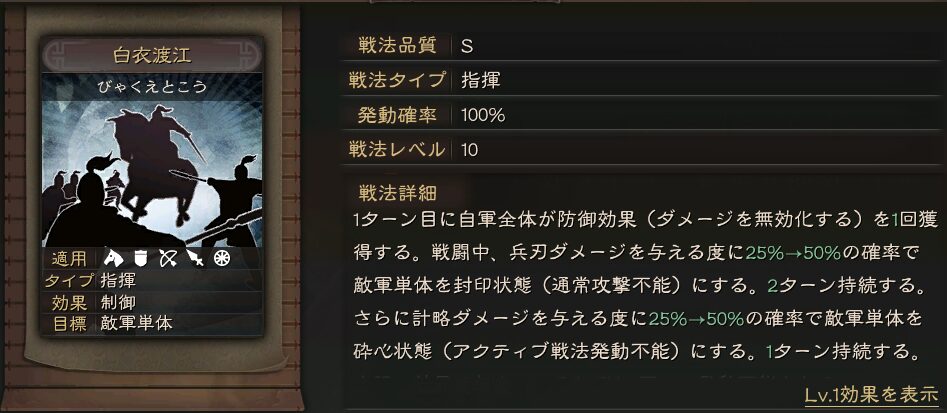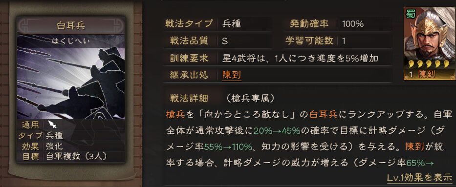 効果:自軍全体の速度16増+自軍2人のアクティブ戦法の与ダメージ5%増