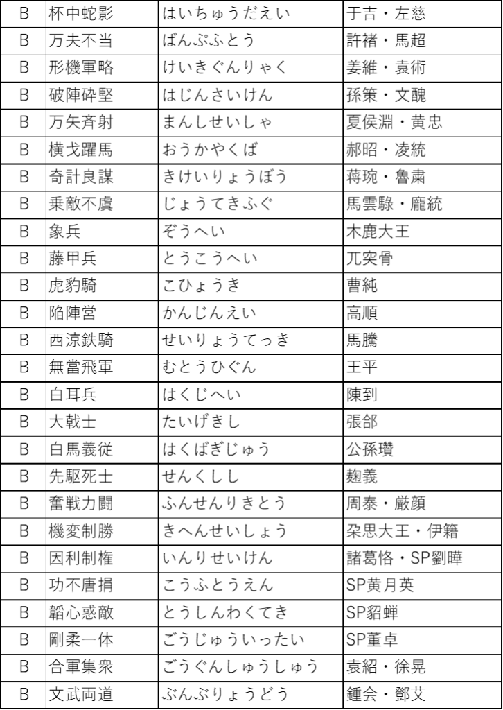 貂蝉以外に覚えさせられているケースを見た事がなく、そもそも貂蝉自体を見ないので使わない人にとってはいらない戦法です。