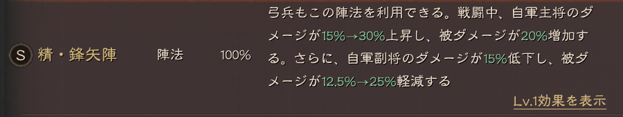 シーズン特性によっては弓兵でも使用できる精・鋒矢陣もあります。