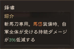 上品、珍品の武器・防具・乗馬・宝物で得られる一番見かける汎用スキルです。