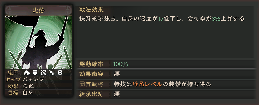 魏延なんかに覚えさせれば面白そうですが、3%なので効果はそこまで大きくなさそうです。