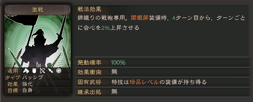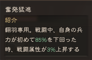 姜維は知力型で運用される事が多いですが、このスキルがあれば武力型編制が出てくるかもしれません。