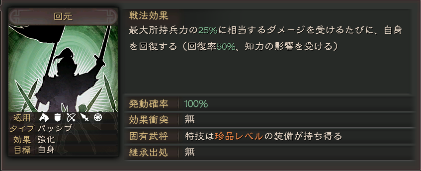 耐久面に難がある武将に覚えさせたいスキルです。