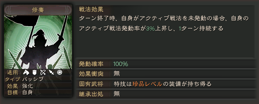固有戦法の発動確率が上がる優秀な戦法です。