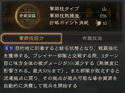 癖が強そうな戦法ですが、統率が55上がるのは大きな効果だと思います。SP馬超のような手数の多い武将と対戦する場合は活躍できそうです。