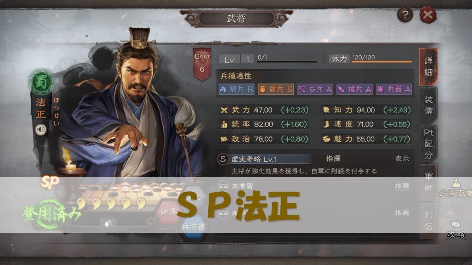 - 副将 SP法正(伏機即動・非攻制勝/三軍救助・統軍・練磨)