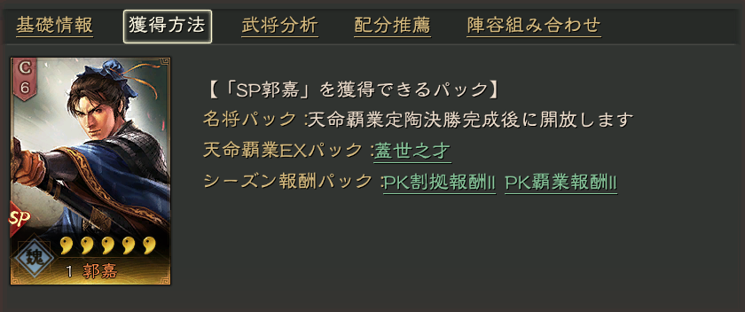 SP郭嘉は2023年7月1日に開始の新シーズン「王師の証」に合わせて登場した武将です。