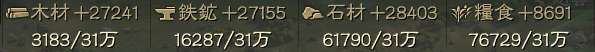 君主殿7、軍営2、兵戦各5、石と木は10で内製官委任中。