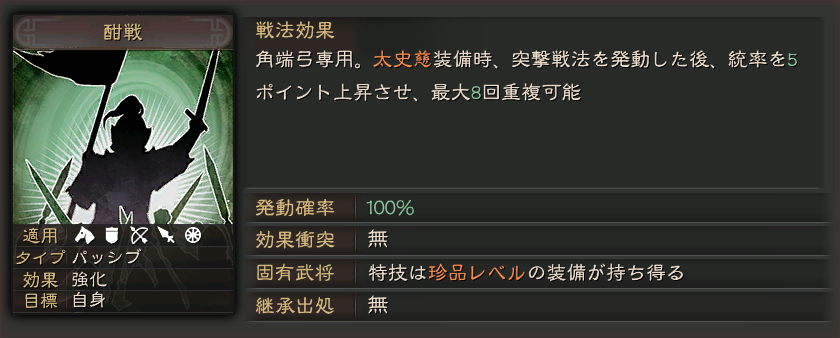 太史慈の固有戦法とも相性がいいので、太史慈に覚えさせるのもおすすめです。